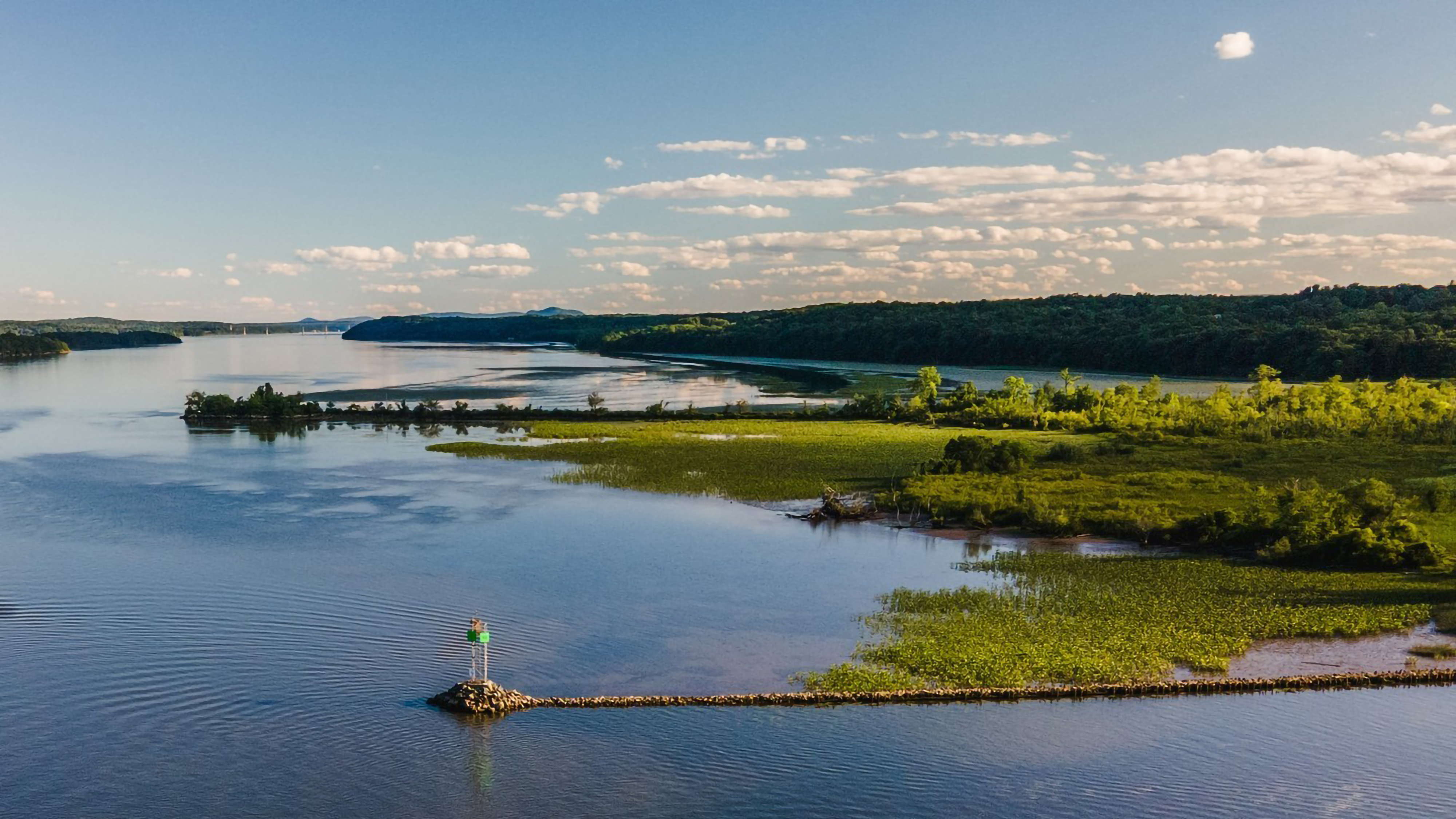 Filename 3429424079196807509.jpg Resolution 4000 × 2250 Format jpeg Megapixels 9.0 MP Added Dec 12, 2024 Colors #a3b2b8 · #5f7485 · #3d4415 Keywords river · water · ripples · green vegetation · marsh · wetlands · trees · forest · hills · distant mountains · blue sky · white clouds · green buoy · rock jetty · peaceful · serene · natural · landscape · aerial · daylight · clear day · calm · blue · green · brown · white · sunny