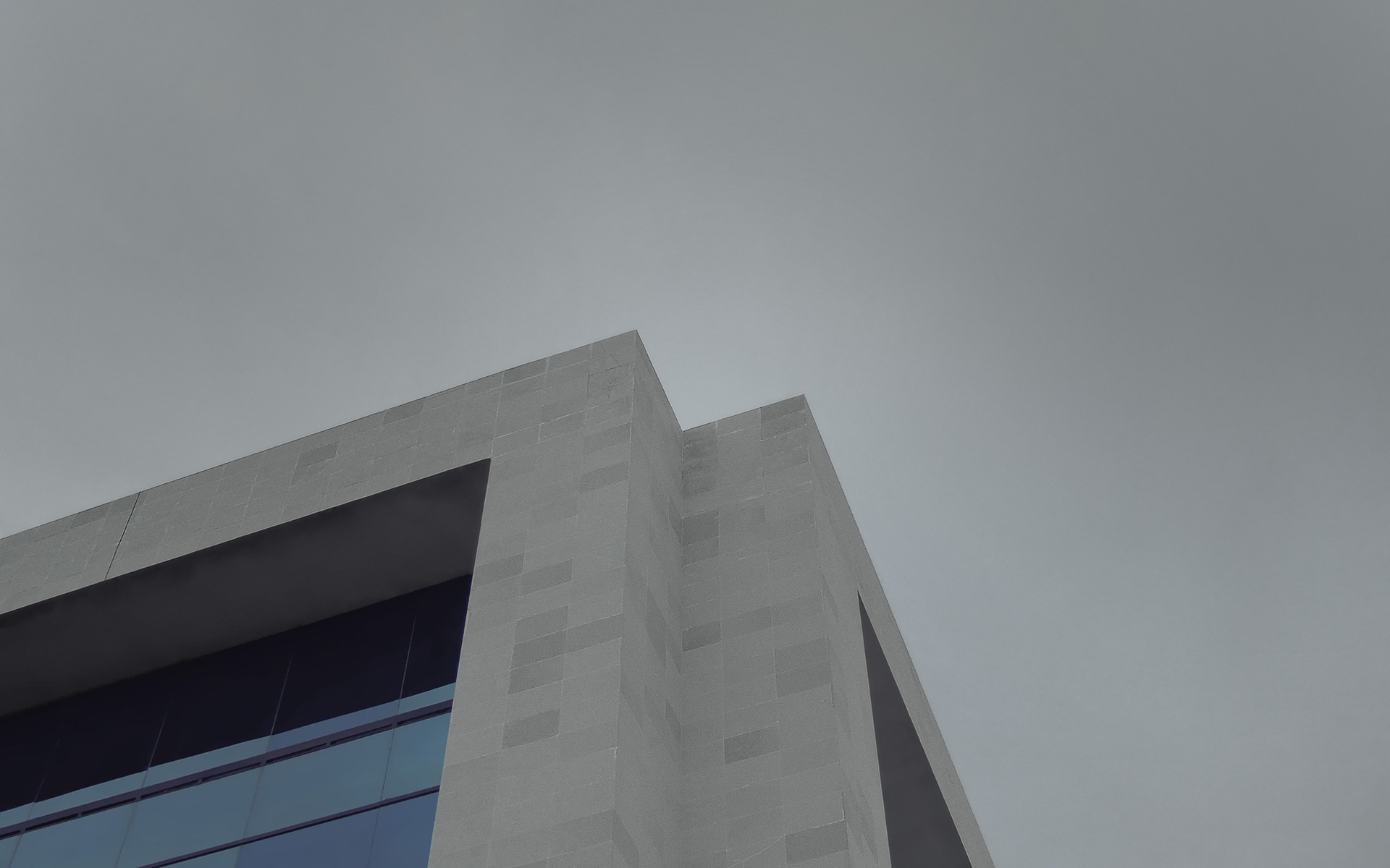 - building · modern architecture · geometric · sharp angles · grey building · windows · blue glass · concrete · urban · minimalist · stark · grey sky · overcast · low angle · abstract · cold